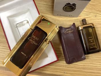 Dior Diorama perfume is 1 fluid ounce. Red-cased Must de Cartier 50 ml. Smaller Must de Cartier 30ml.