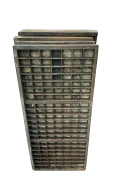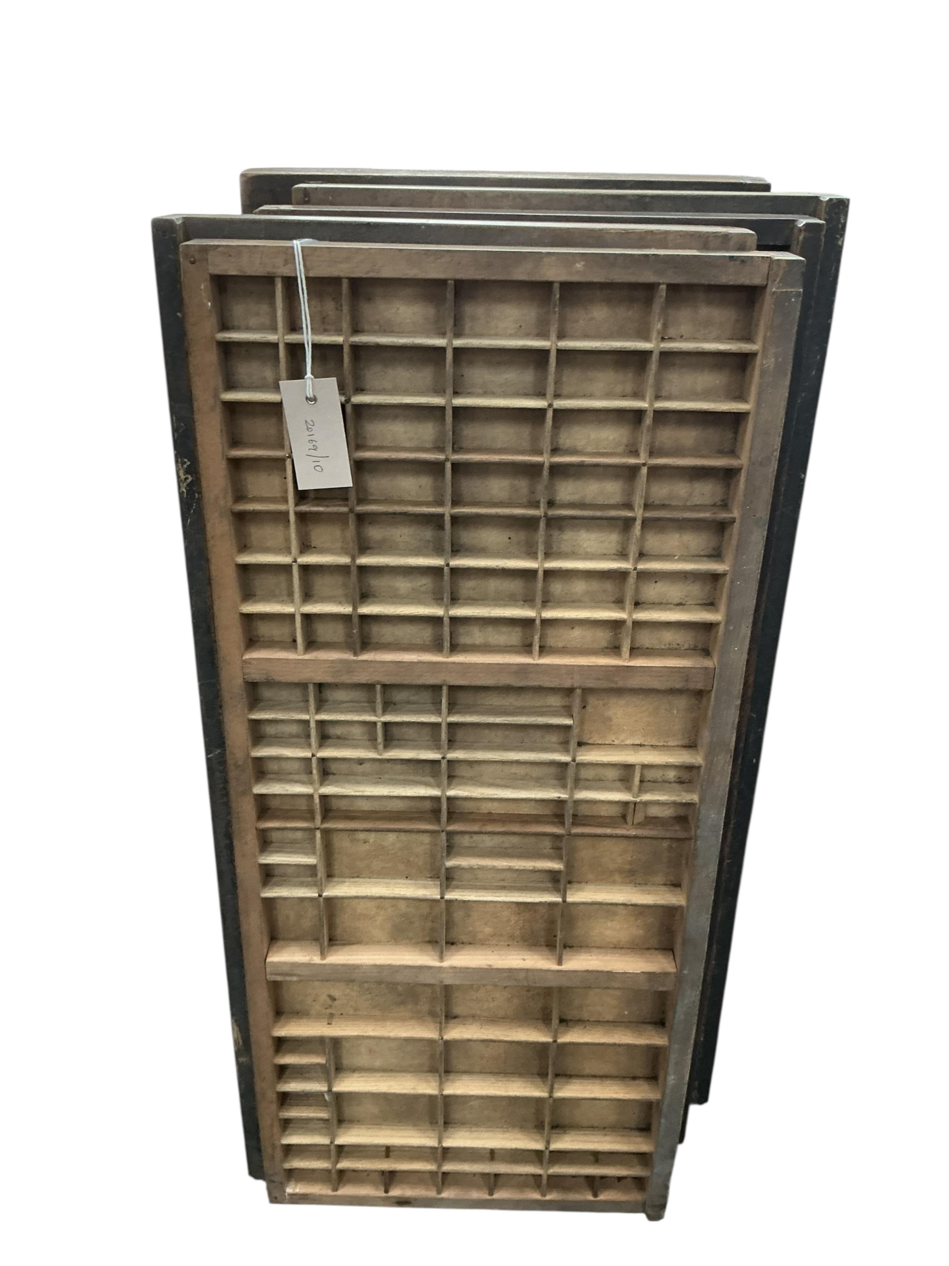 Lot 1076 , Ten vintage printer's typeface trays, width 37cm, height 83cm