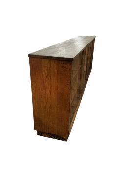 Lot 1069 , A 1950's oak pigeonhole school cabinet, width 264cm, depth 41cm, height 92cm