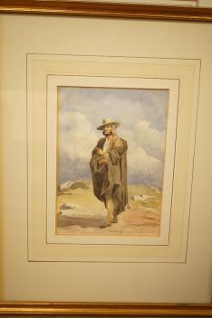 Lot 1768 , A collection of four watercolours to include J. Hardcastle, maritime watercolour, signed and dated 1910 and a study of a cloaked figure, largest 50 x 35cm