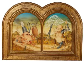 oil on arch-topped panels,