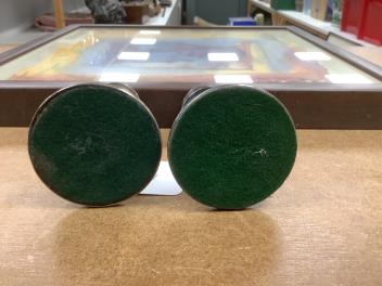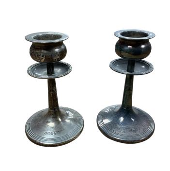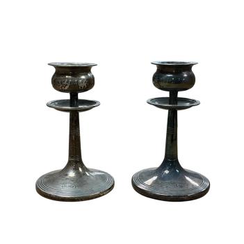 Lot 1874 , A pair of George V silver mounted dwarf candlesticks, by Walker & Hall, Sheffield, 1914, 10cm, weighted.