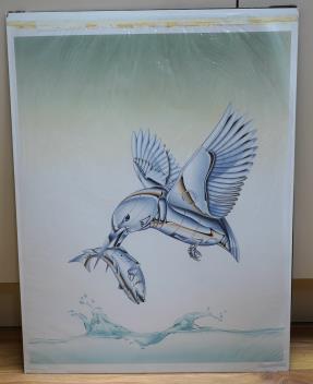 Lot 3292 , Nigel Tidman, ‘Kingfisher’, the original 1980s airbrush artwork on artist’s card, possibly for the poster publisher and retailer Athena, 61 x 48cm
