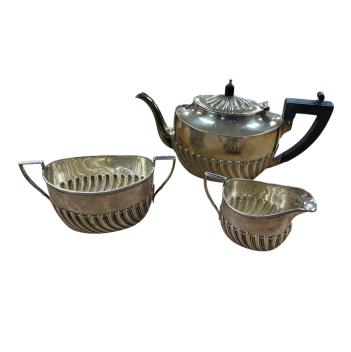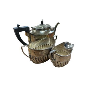 Lot 1827 , A late Victorian matched demi-fluted silver three piece bachelor's tea set, two pieces by George Howson, Sheffield, 1895, gross weight 11.8oz.