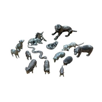 Lot 1847 , A collection of fourteen modern naturalistically cast mainly silver animals, including a jaguar, S&N, J&J, London, 1998, length approx. 62mm, a snake, unicorn, polar bear, ram, sheep, otter with fish, bear, baby lamb and