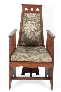 Lot 329 , Attributed to George Montague Ellwood (1875-1955): An Arts & Crafts ‘Quaint’ boarded oak armchair, made by Trapnell & Gane, Bristol
