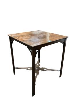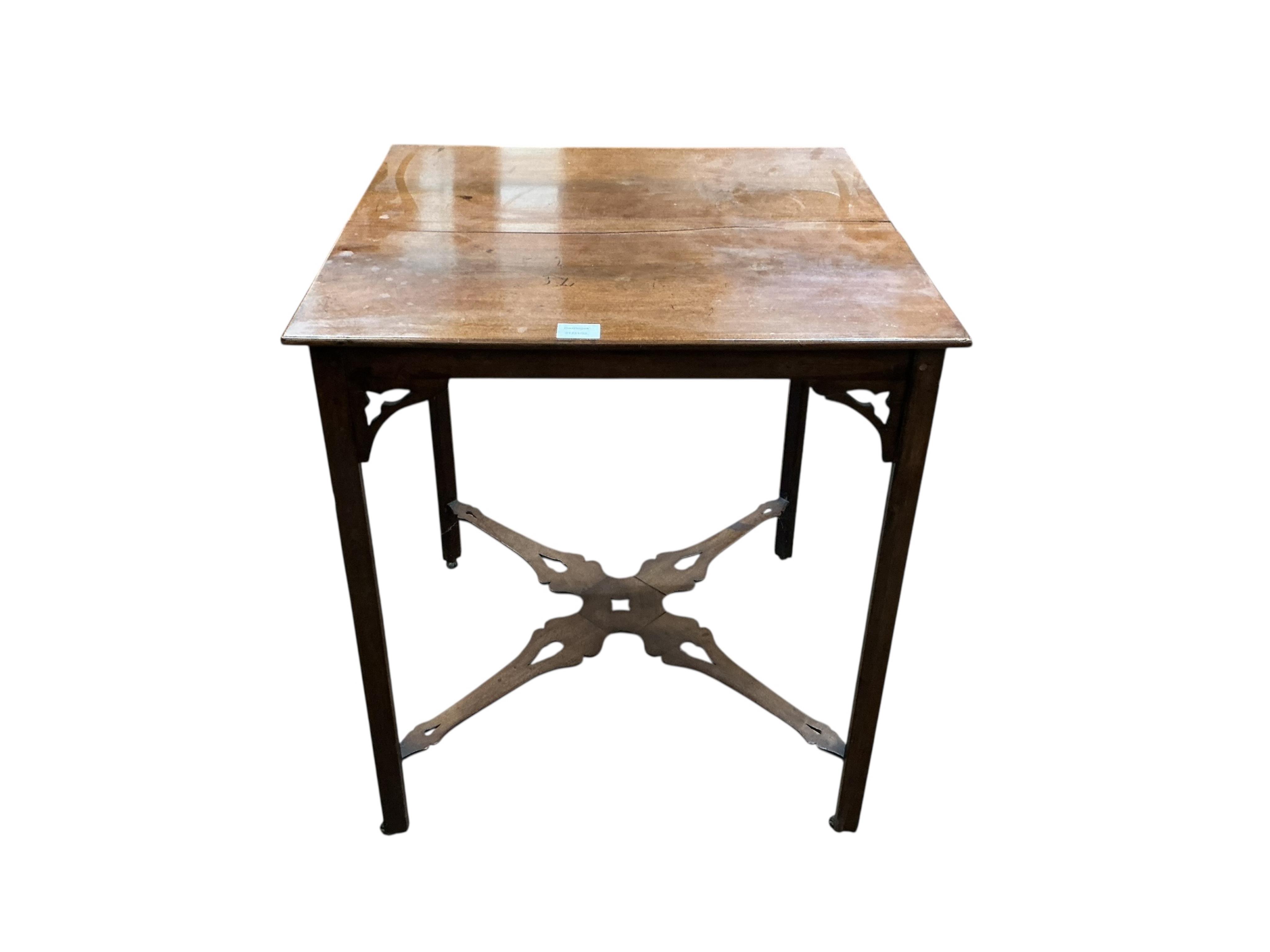 Lot 1101 , A late Victorian mahogany square topped occasional table, on square chamfered legs, united by pierced stretchers, width 64cm, depth 63cm, height 72cm