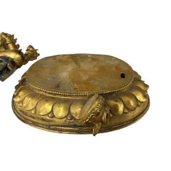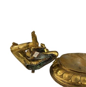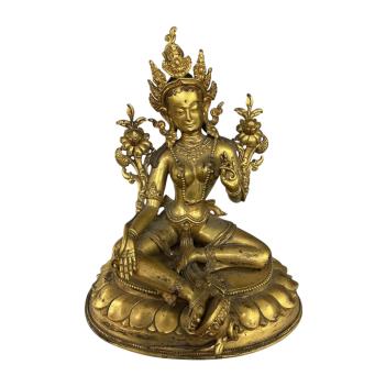 Lot 1329 , A Tibetan style ‘jewelled’ gilt bronze seated figure of Green Tara, on a separate lotus stand, height 25cm.