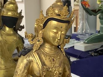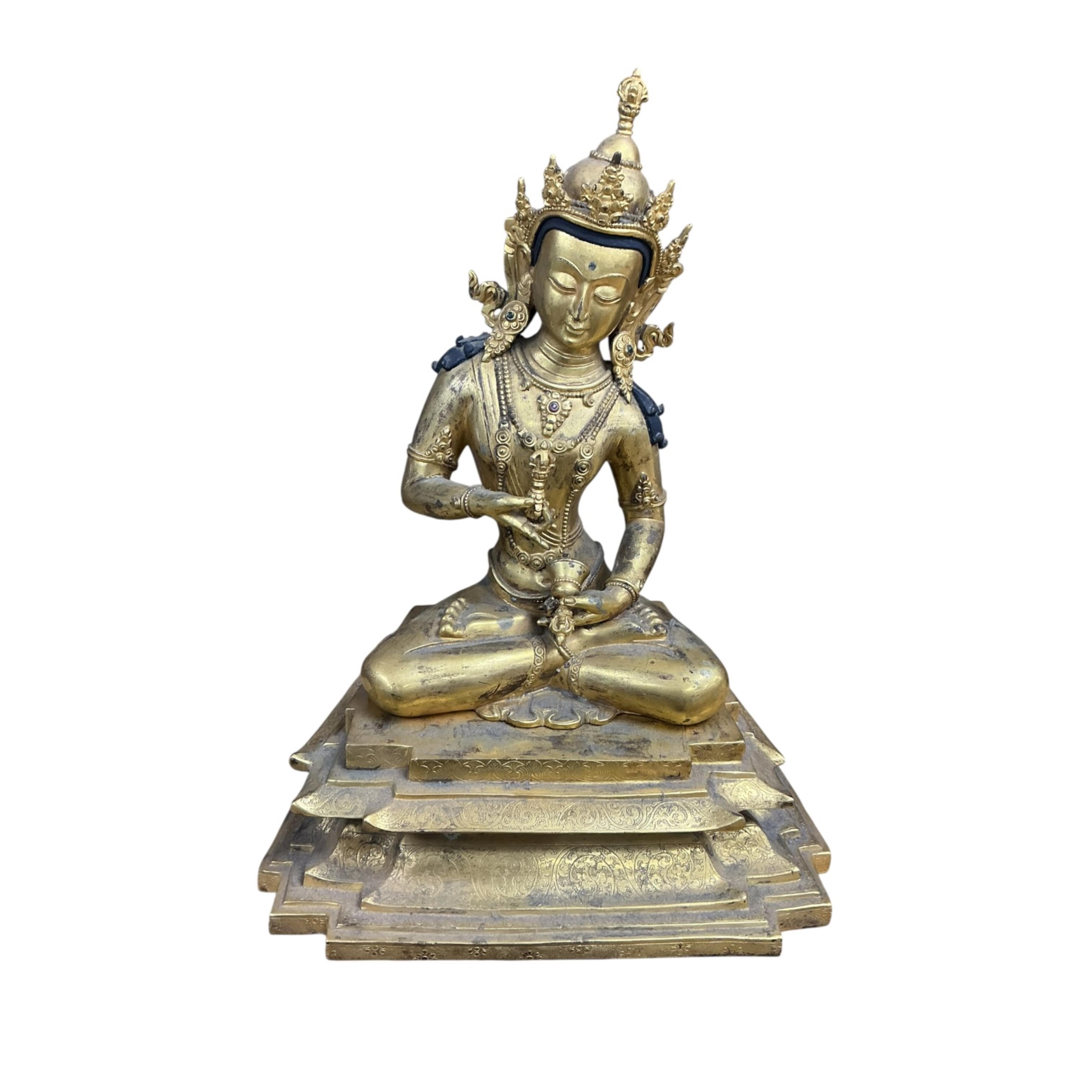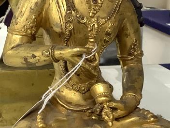 Lot 3552 , A Tibetan style gilt bronze seated figure of Vajrasattva, on a detachable stepped throne base, height 32cm.