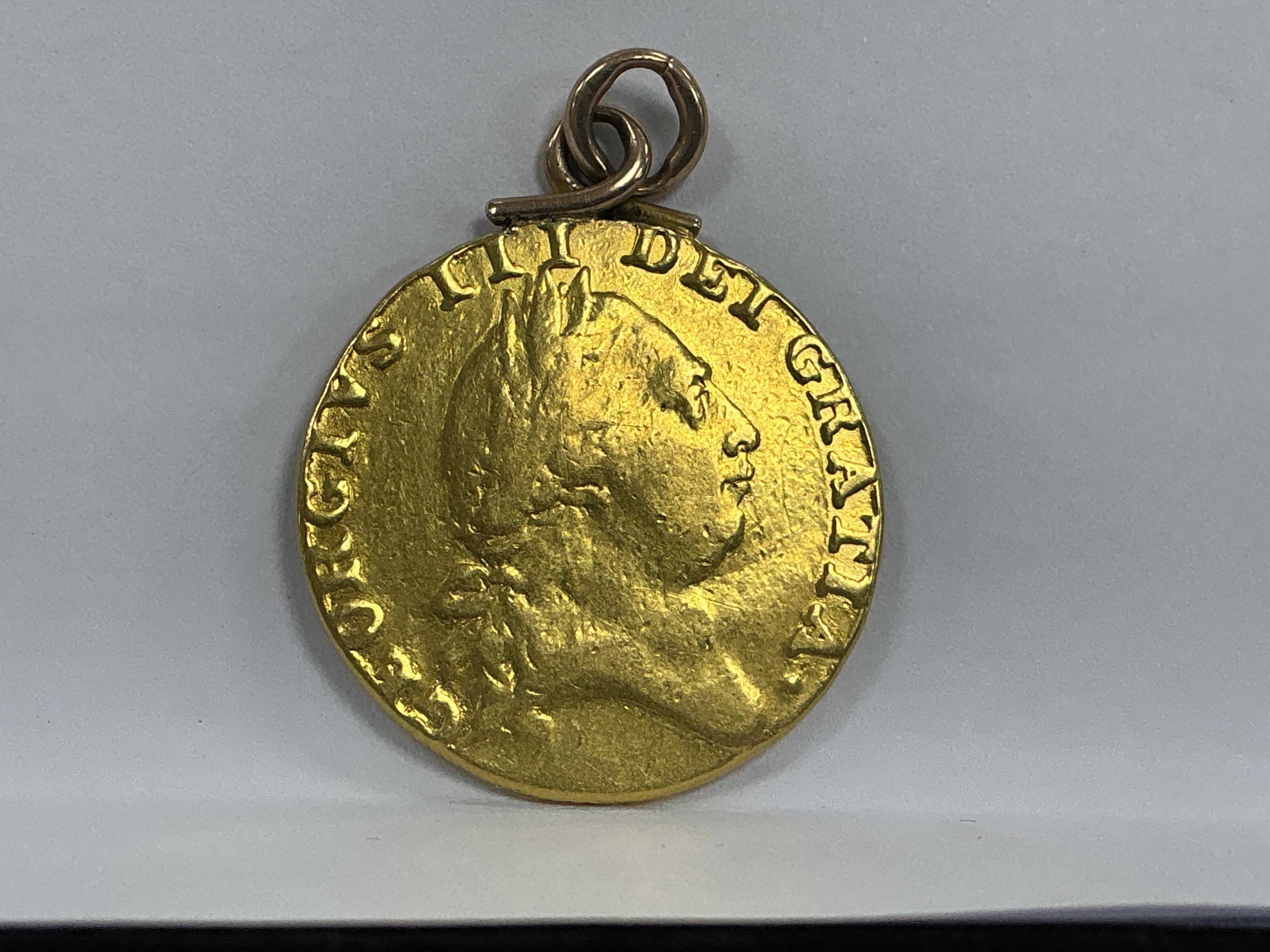 Lot 2095 , British gold coins, George III, gold spade type guinea, 1787, fine, mounted