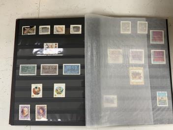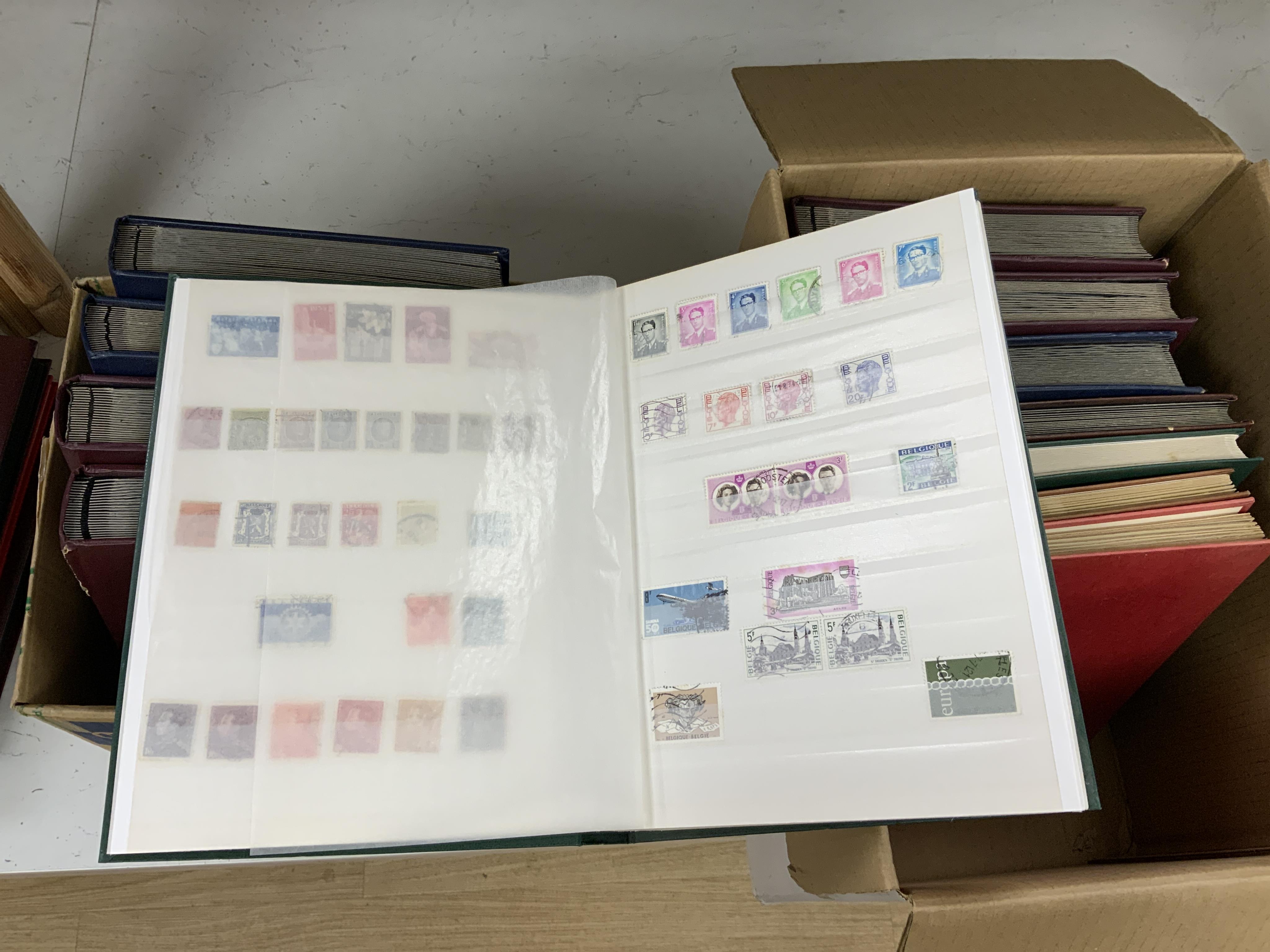 Lot 2172 , Twelve stamp stock books containing a variety of World postage stamps, countries including; Canada, Germany, Aden, Guernsey, St. Lucia, St. Kitts, Malta, Australia, northern Rhodesia, USA, each album dedicated to either
