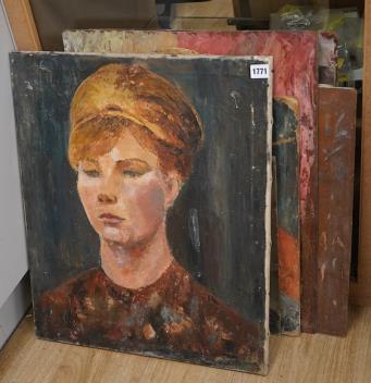 Modern British, a collection of portrait and nude studies, oils, unframed, most on board, largest 60 x 50cm