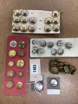 Lot 1403 , An assortment of military and naval buttons and a WWII Iron cross