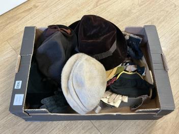 Lot 1433 , A quantity of assorted vintage hats, ties, kid gloves, purses etc., (qty).