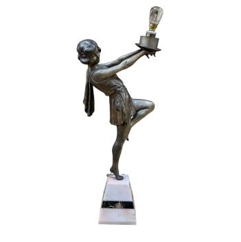 Lot 3130 , Émile-Nestor Carlier (French, 1849–1927). An Art Deco bronzed spelter and marble dancing girl table lamp, signed to base, height 40cm.