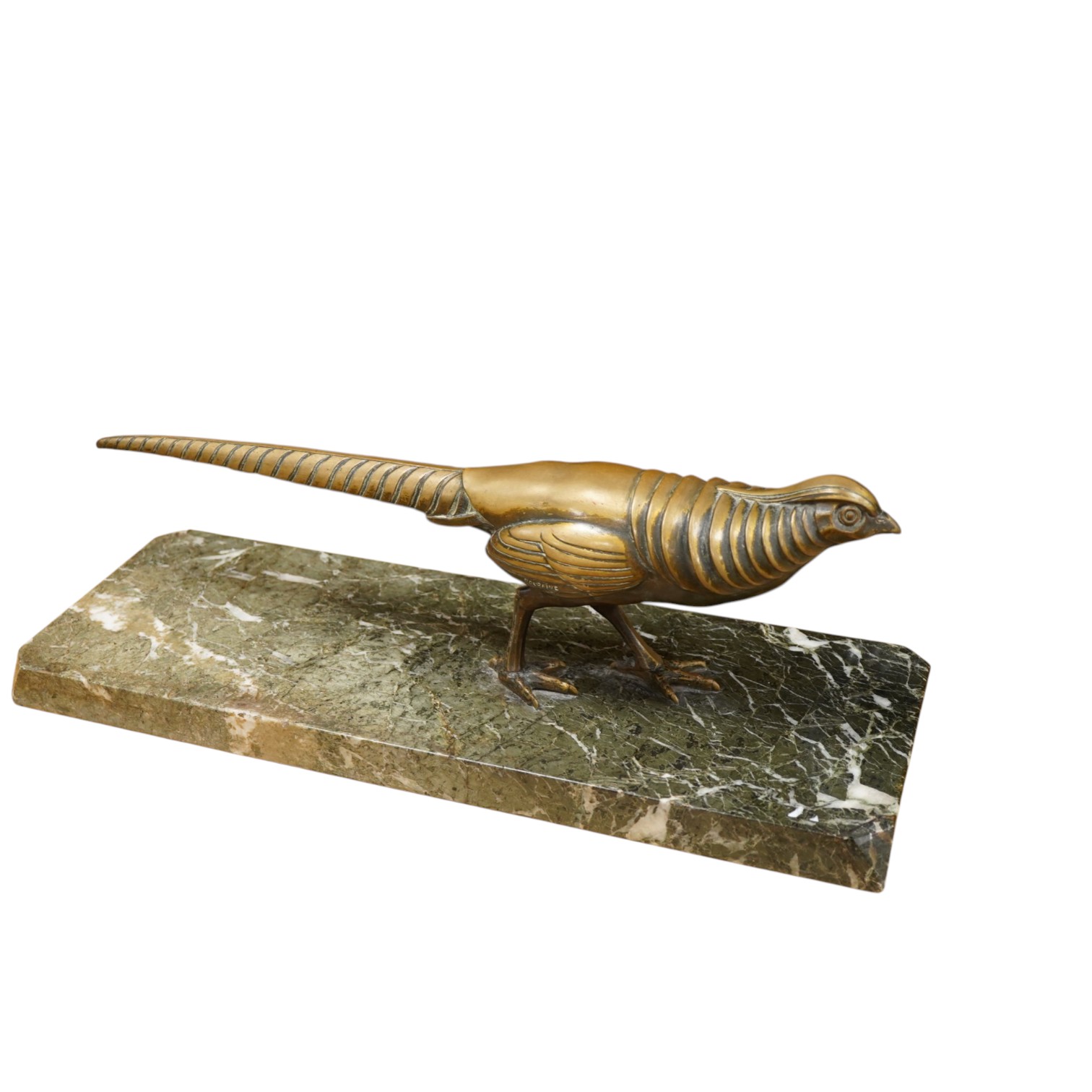 Lot 3162 , Marcel Bouraine, (1886/1948) a French Art Deco bronze pheasant on canted rectangular green marble plinth, length 52cm