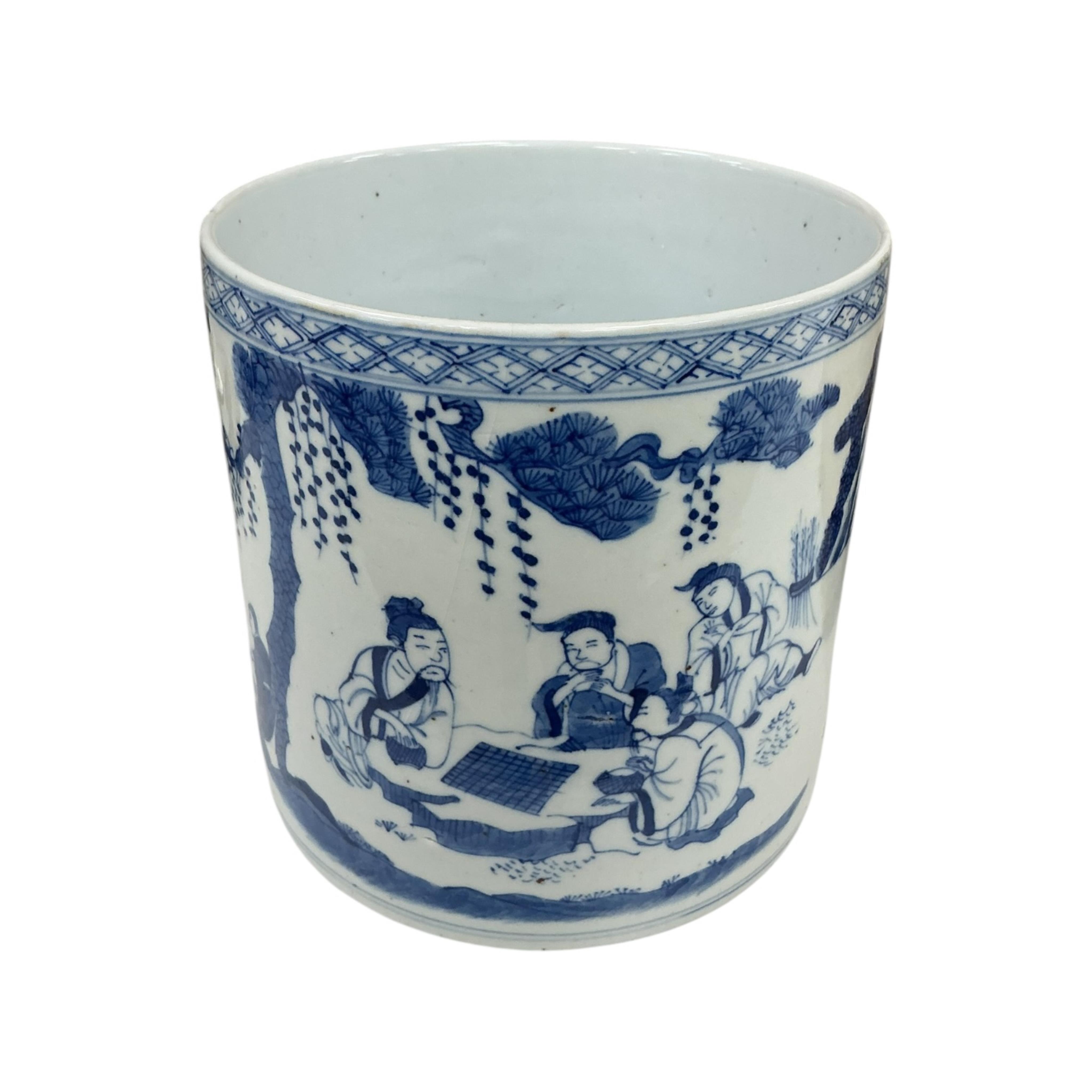 A Chinese blue and white brush pot, height 17cm.