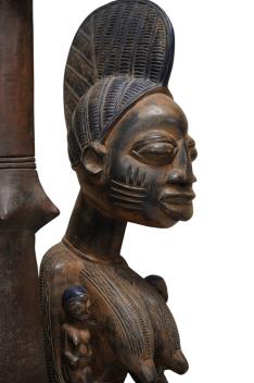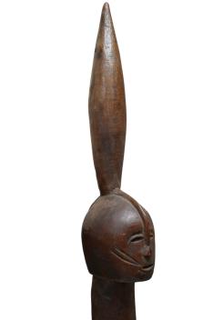Lot 1427 , A large West African carved wood kneeling figure and two tribal poles, largest 120cm high