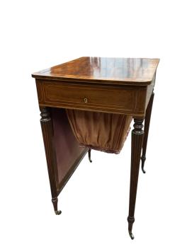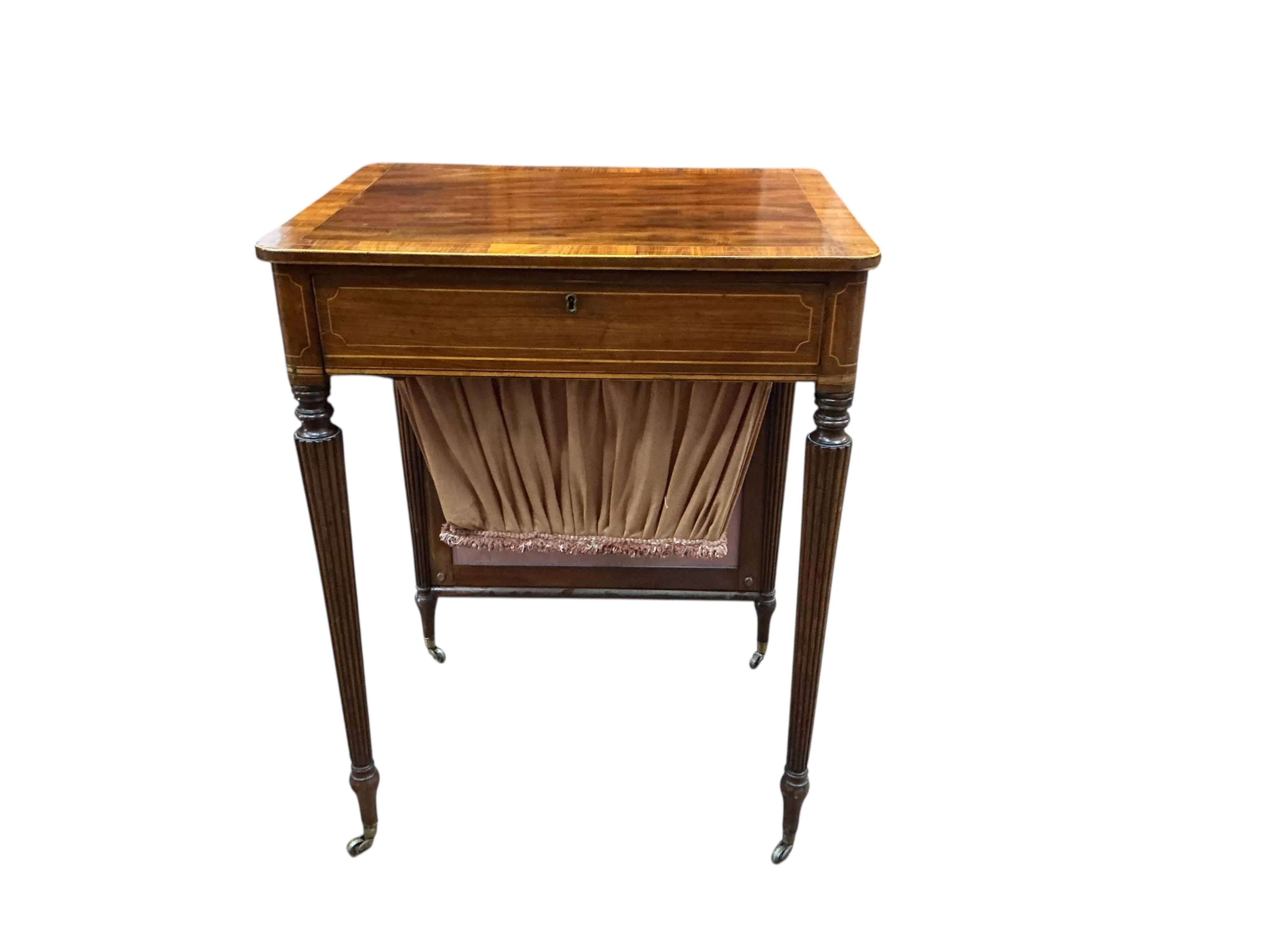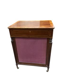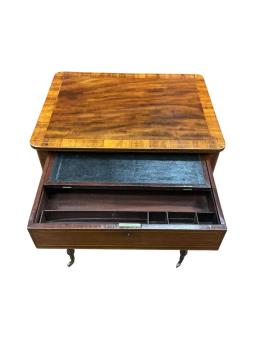 Lot 1034 , A late George III mahogany work / writing table, with rising firescreen, width 59cm, depth 46cm, height 76cm