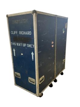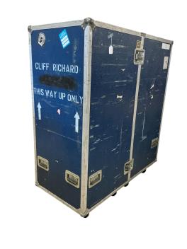 Lot 3053 , Sir Cliff Richard interest - a flight case on wheels used on the Cliff Richard tours from the mid 1980s until the most recent tour in 2025, in the form of a folding two-section wardrobe, containing hanging space on eithe