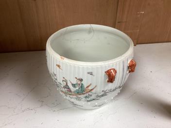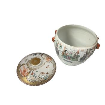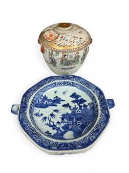 Lot 1368 , A Chinese porcelain jar and cover with a blue and white warming dish, jar height 17cm, dish diameter 23.5cm, (2).