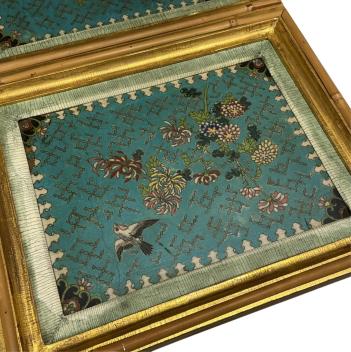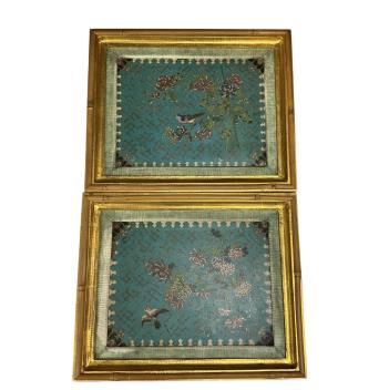 Lot 1371 , A pair of Chinese/Japanese cloisonné plaques with gilt frames, both overall 25.5 x 31cm.