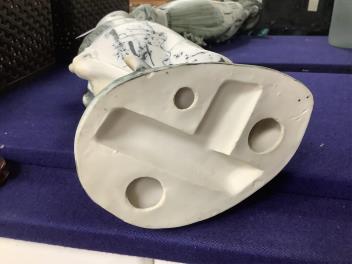 Rub to black enamel at tip of his left foot; tiny shallow chip to underside of footrim, neither fault easily seen.