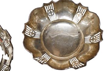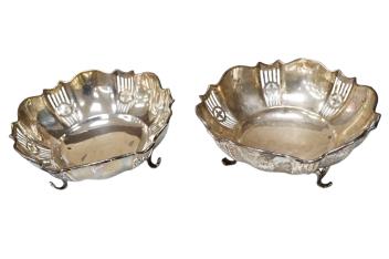 Lot 1884 , A pair of George V pierced silver bonbon dishes, on three scroll feet, Henry Clifford Davis, Birmingham, 1918, diameter 14cm, 7.2oz.