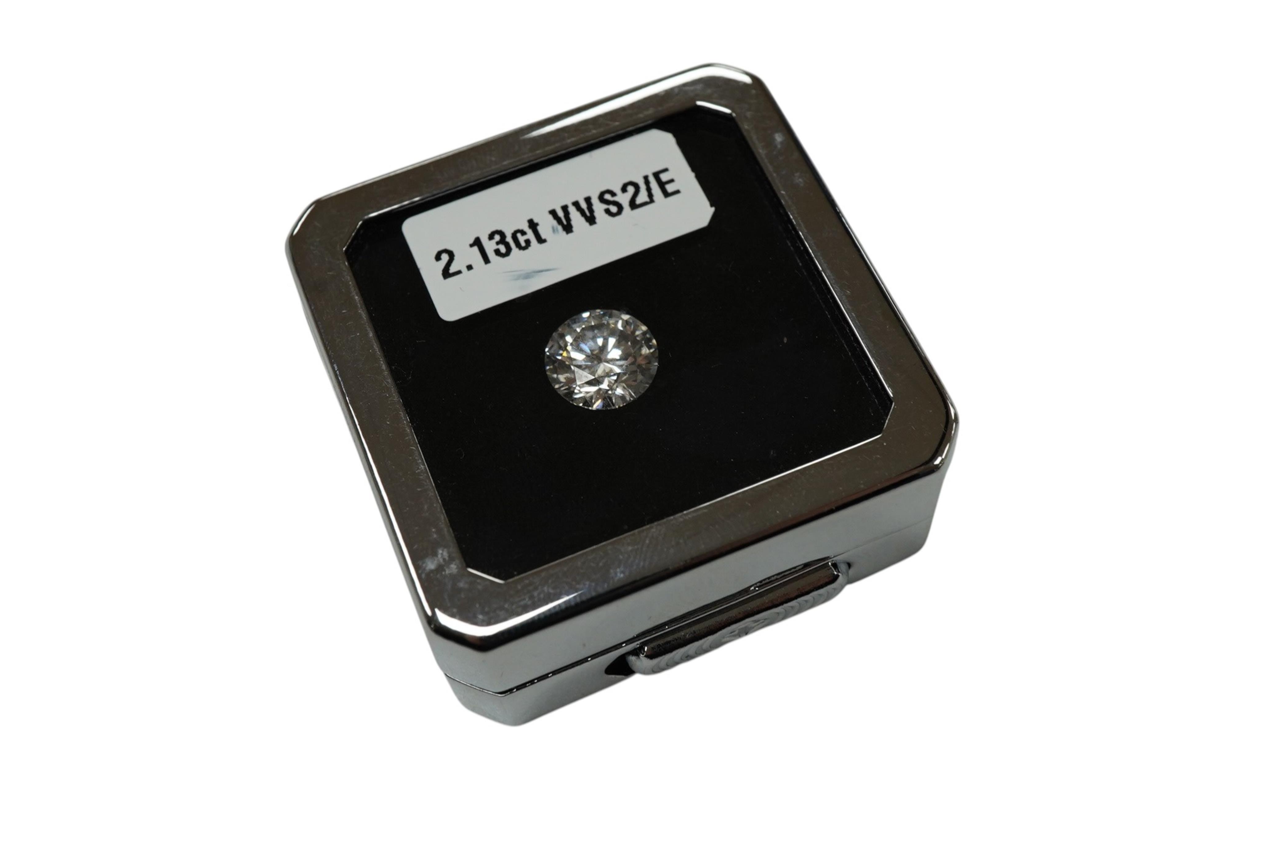Lot 1936 , An unmounted synthetic (lab grown) diamond, brilliant-cut, 2.13 carats, Accompanied by an IGI report stating that the synthetic diamond is E colour, VVS1 clarity