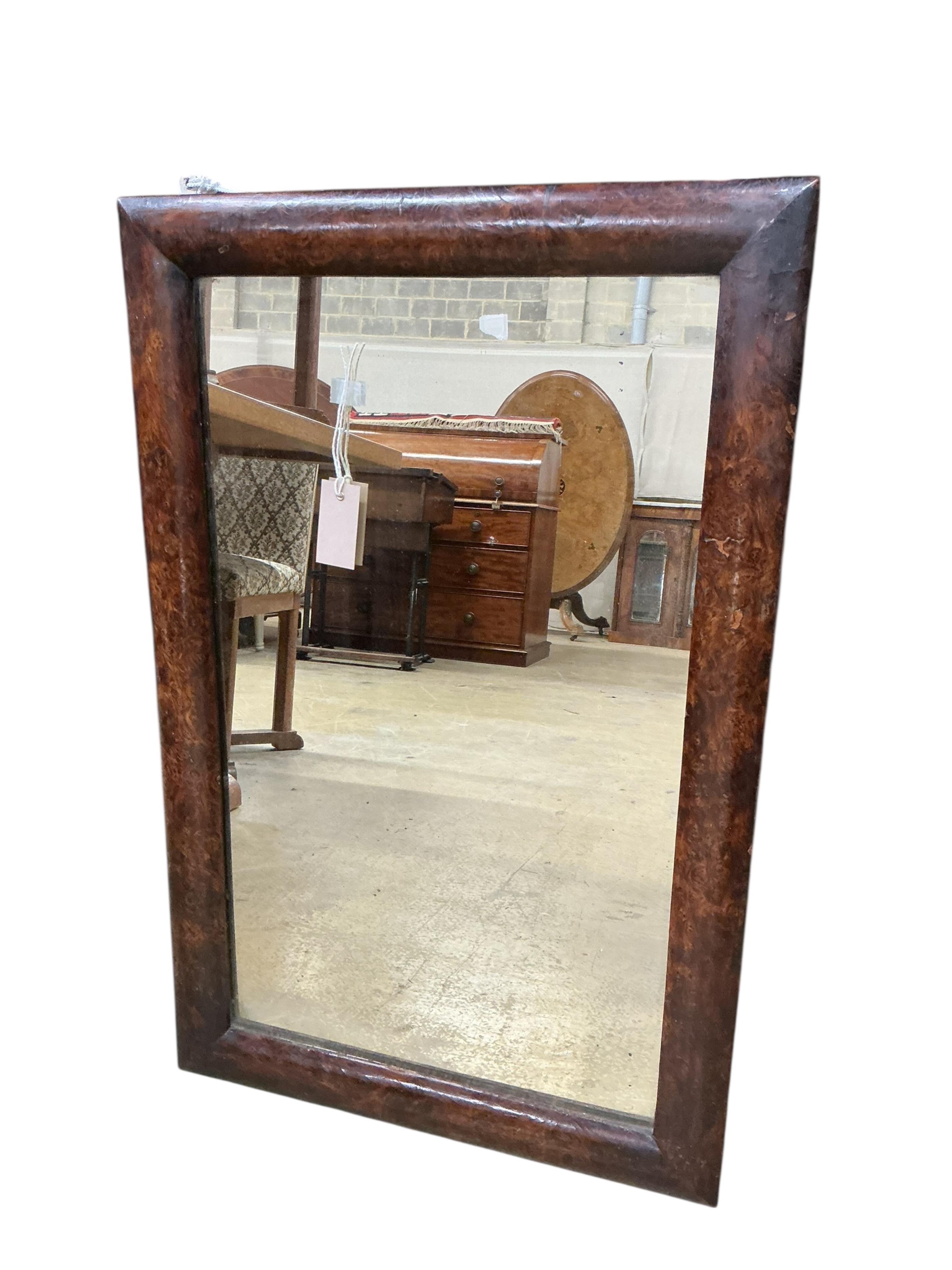 A burr walnut rectangular mirror, width 54cm, height 83cm