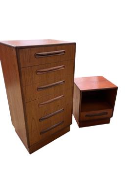 Lot 3413 , A G Plan Fresco tallboy of six drawers, width 56cm, depth 44cm, height 104cm together with a bedside cabinet, width 46cm, depth 40cm, height 54cm