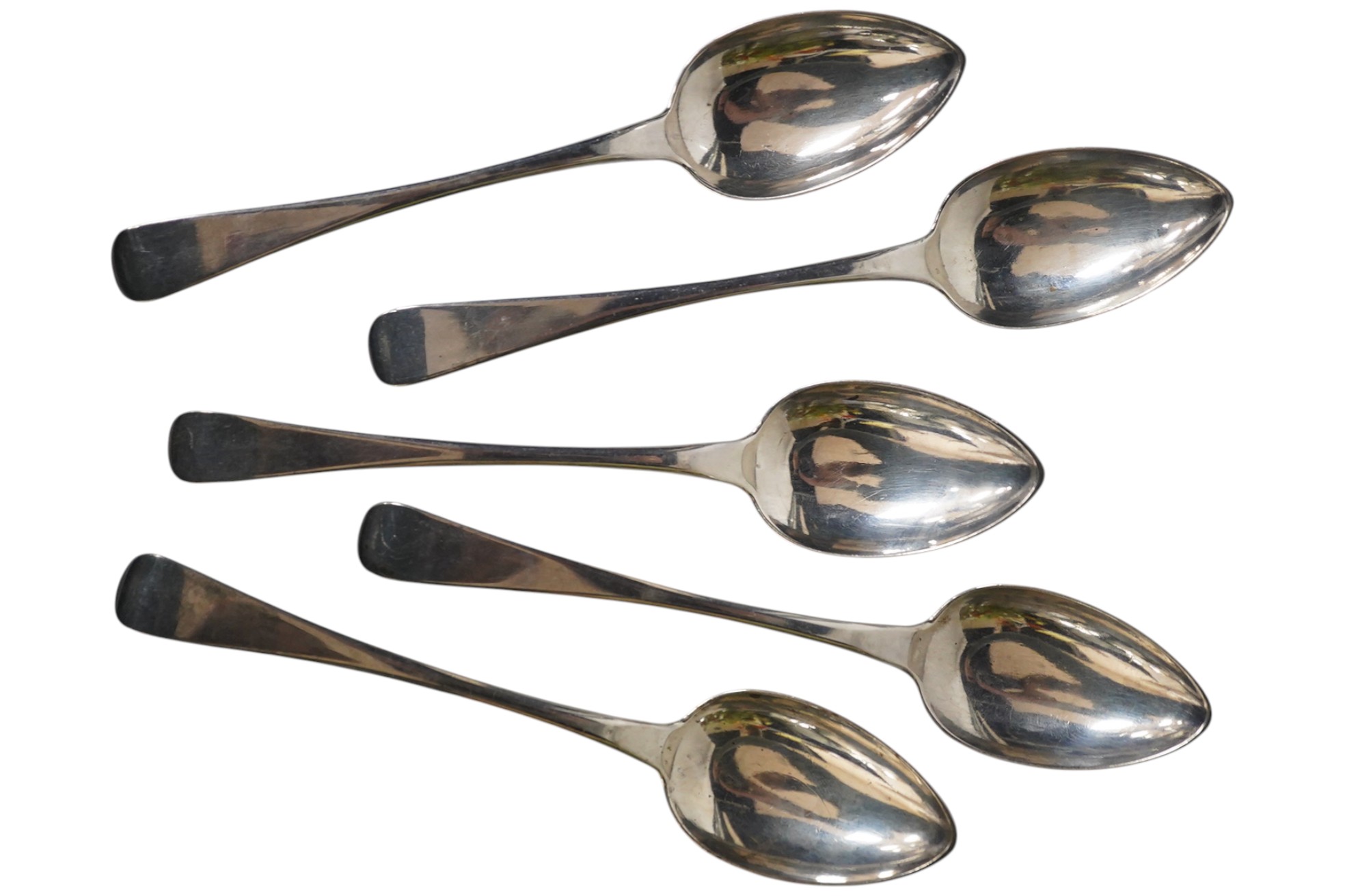 Lot 3858 , A set of six early 19th century Scottish provincial? silver Old English pattern dessert spoons, stamped Crighton, possibly Dumfries, 17.5cm, 6oz.