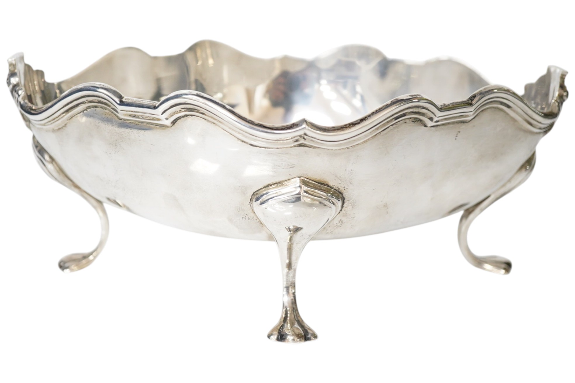 Lot 3846 , An Edwardian silver boat shaped bowl, with reeded border, on four cabriole feet, James Ramsay, Sheffield, 1902, length 19.8cm, 10.4oz.