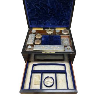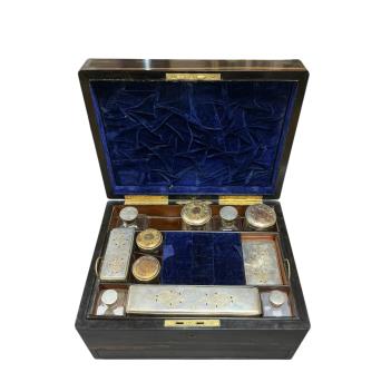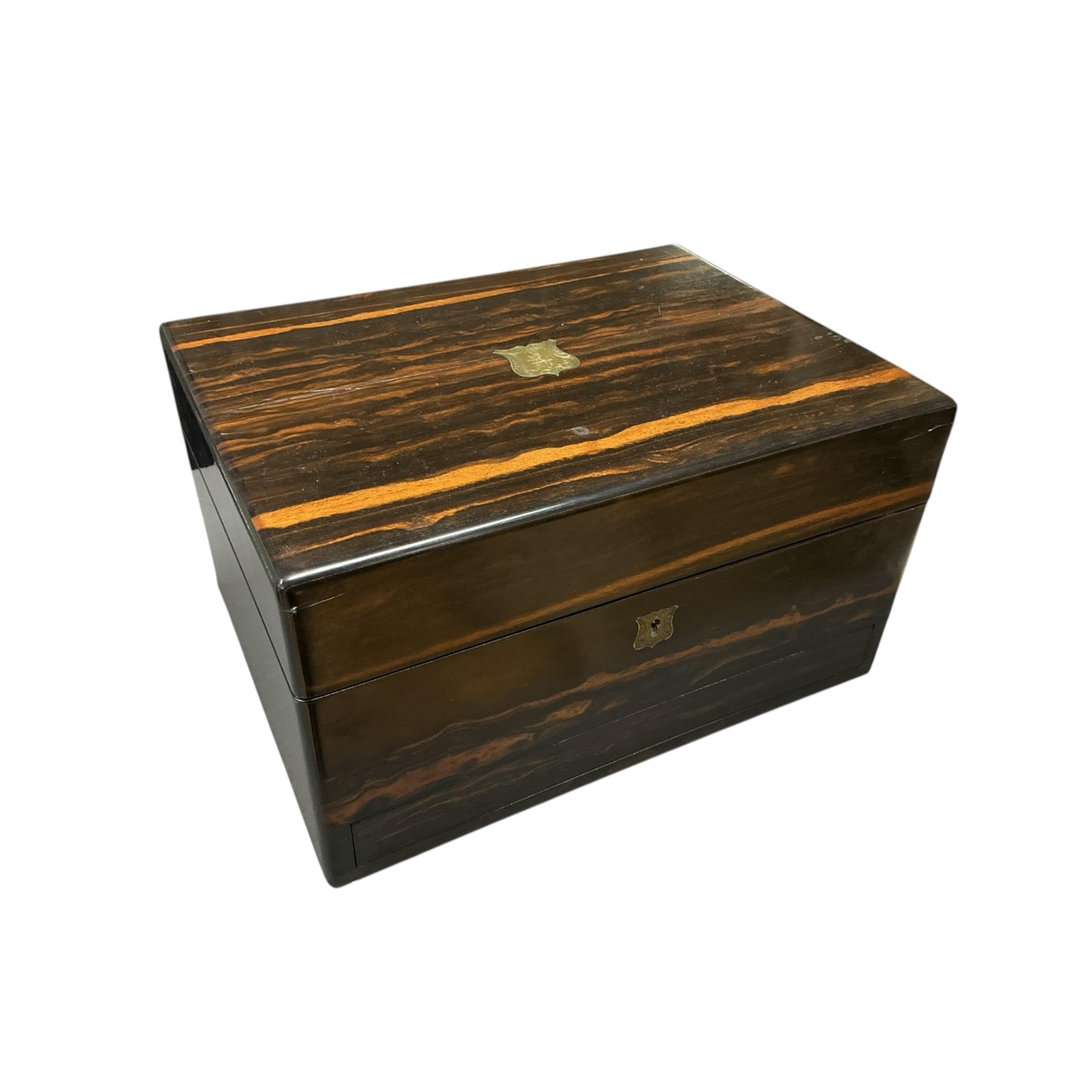 Lot 3557 , A Victorian coromandel toilet box with plate mounted tray interior width 30cm