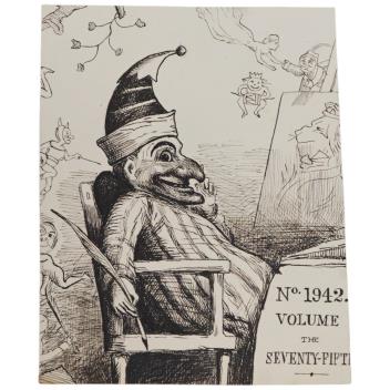 Lot 3666 , A Victorian album of ink sketches to include punch style cartoons, ‘ The Jackdaw of Rheims’, ‘Intuition’ and ‘Ghost’, album 31 x 27cm