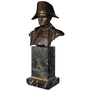 Lot 3180 , After Emile Pinedo, a bronze bust of Napoleon on square green marble plinth, early 20th century. Height 27cm.