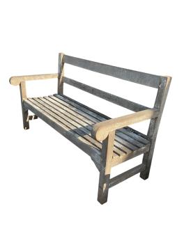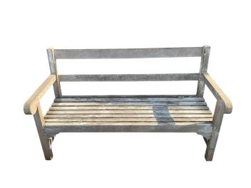 Lot 1011 , A weathered teak slatted garden bench, width 154cm, depth 67cm, height 90cm