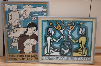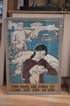 Lot 3257 , Two framed mid century original 1960's Vietnamese government posters, Spring Festival and Vaccinate your pigs, campaign, largest 73 x 52cm