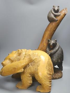 Two large Japanese carved bears groups, talle