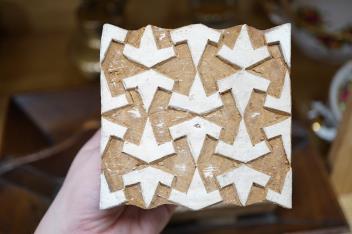 Lot 331 , A wooden cutlery box, 42cm wide, together with carved patterned printing blocks, and other miscellaneous items