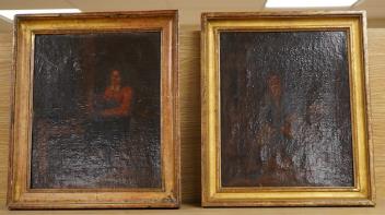 19th century, Dutch school, tavern scenes, pair of oils on canvas, 30 x 24cm