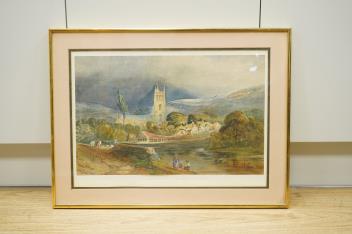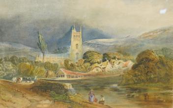 Lot 1801 , 19th century, English school, riverscape with church, watercolour, 31 x 48cm