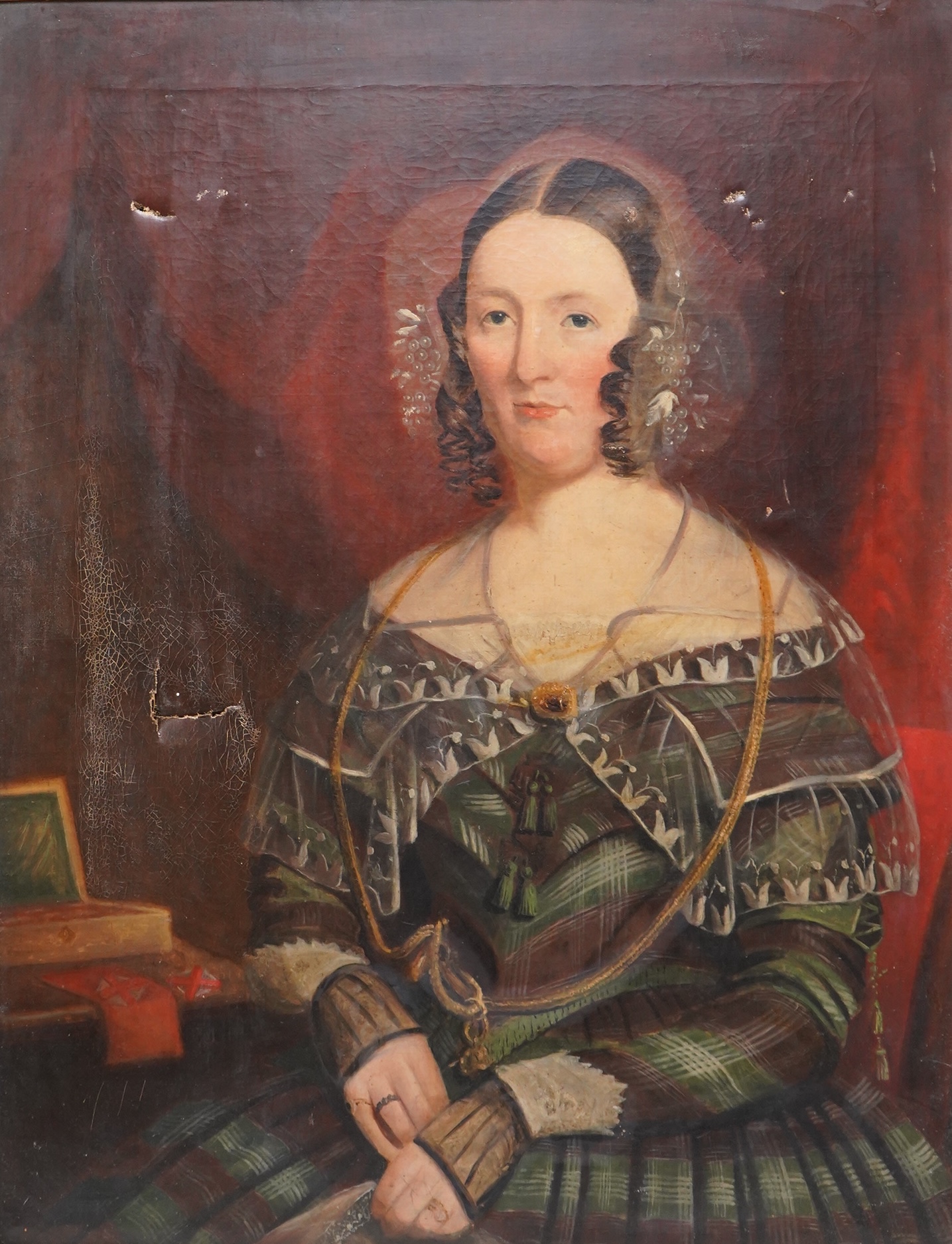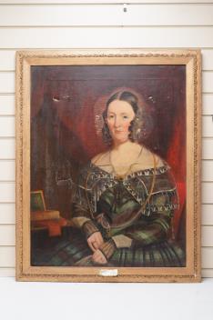 Lot 1746 , 19th century, naive school, portrait of Jane Nisbett (1815-1888), oil on canvas, 90 x 69cm