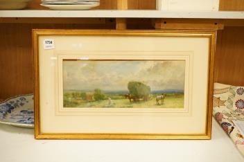 Lot 1734 , 19th century English School, Loading the hay cart, watercolour, 17 x 44cm