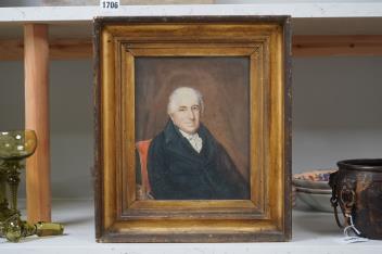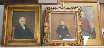 Lot 1705 , 19th century School, Three-quarter length portrait of a gentleman wearing military dress, unsigned, watercolour, together with two other portraits of Victorian gentleman, largest 27 x 20cm, one housed in an ornate gilt f