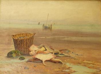 Lot 1709 , 20th century, Coastal view, oil on canvas, indistinctly signed W. Bart?, 22 x 30cm