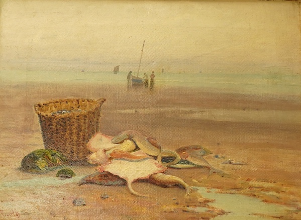 20th century, Coastal view, oil on canvas, indistinctly signed W. Bart?, 22 x 30cm