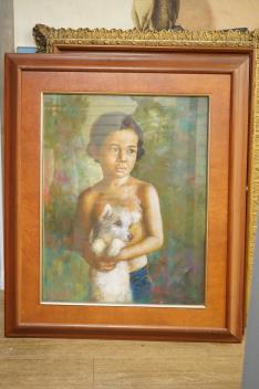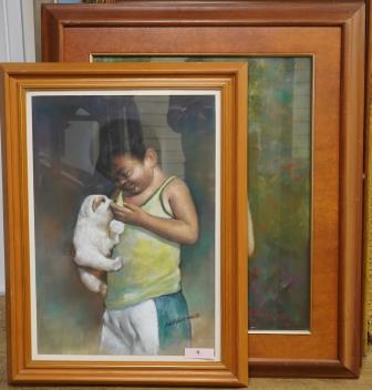 Lot 1773 , 20th century, Portrait of a young Thai girl holding a puppy, indistinctly signed and dated 1981 together with a similar pastel of a young boy holding a dog, indistinctly signed and dated '82, largest 70 x 54cm