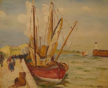 Lot 704 , 20th century, harbour view with moored boats, indistinctly signed, Impressionist oil on board, 47 x 57cm