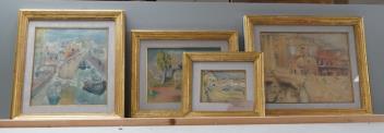 Lot 1719 , 20th century school, riverscapes and parkland, a set of four mixed medias, largest 20 x 25cm